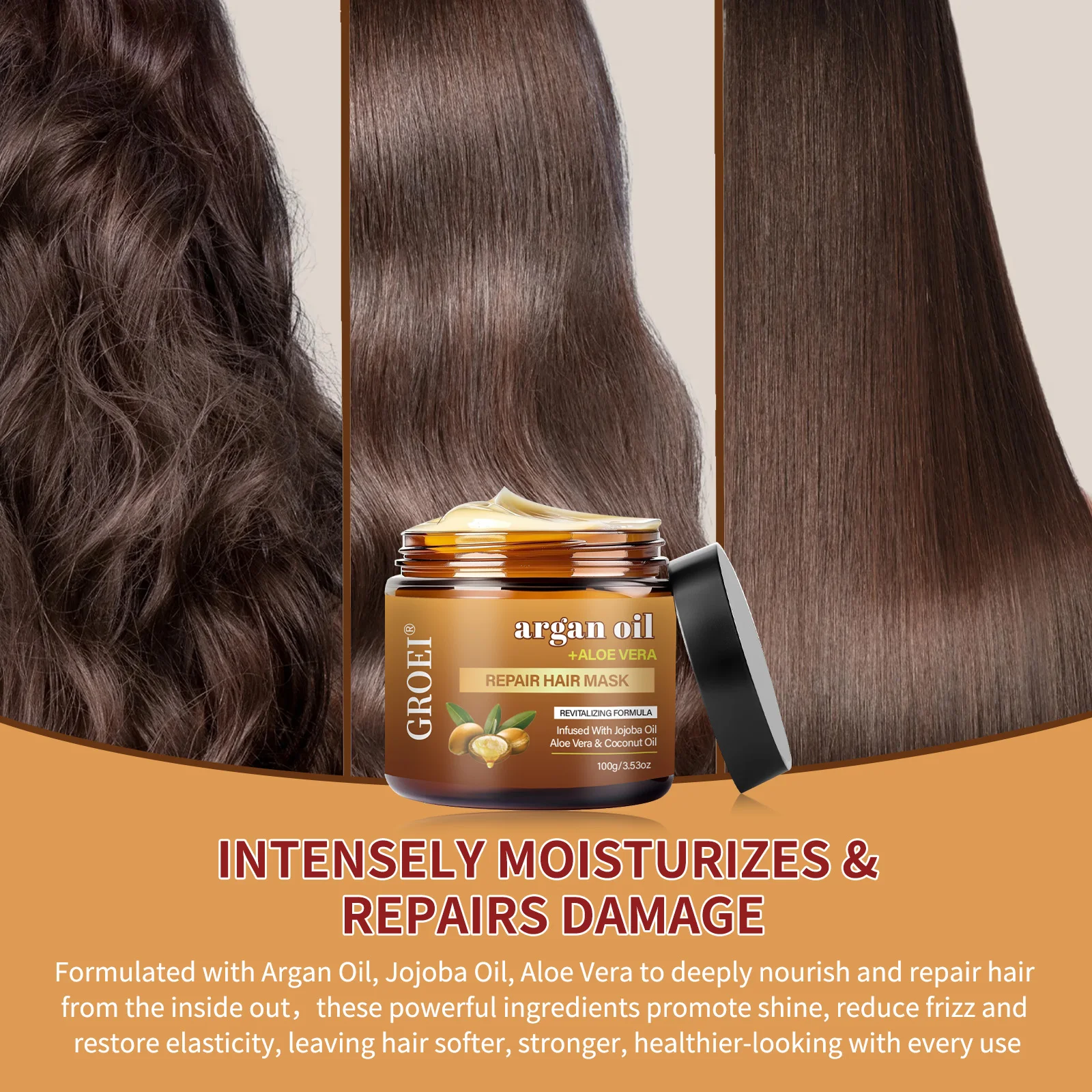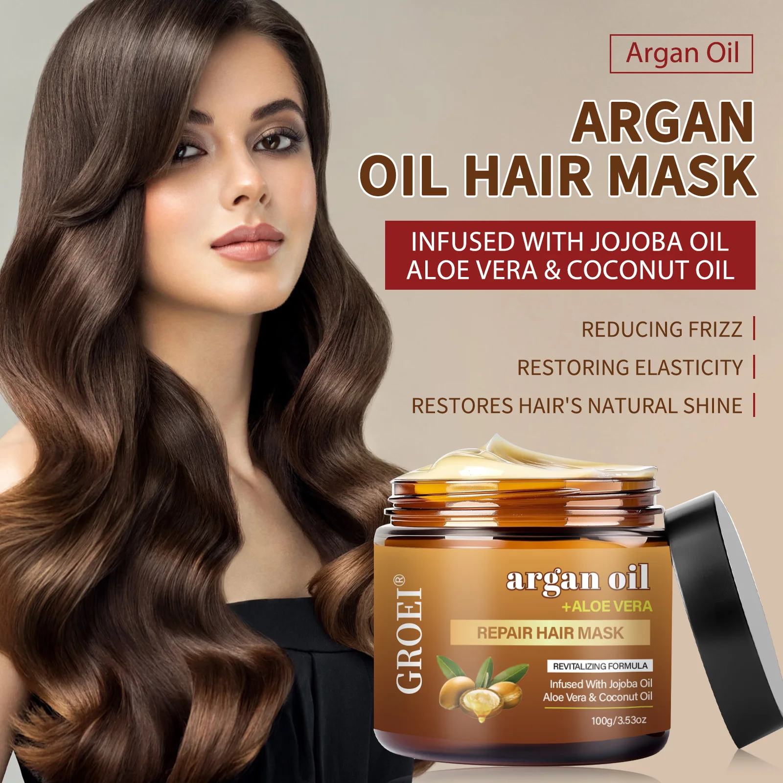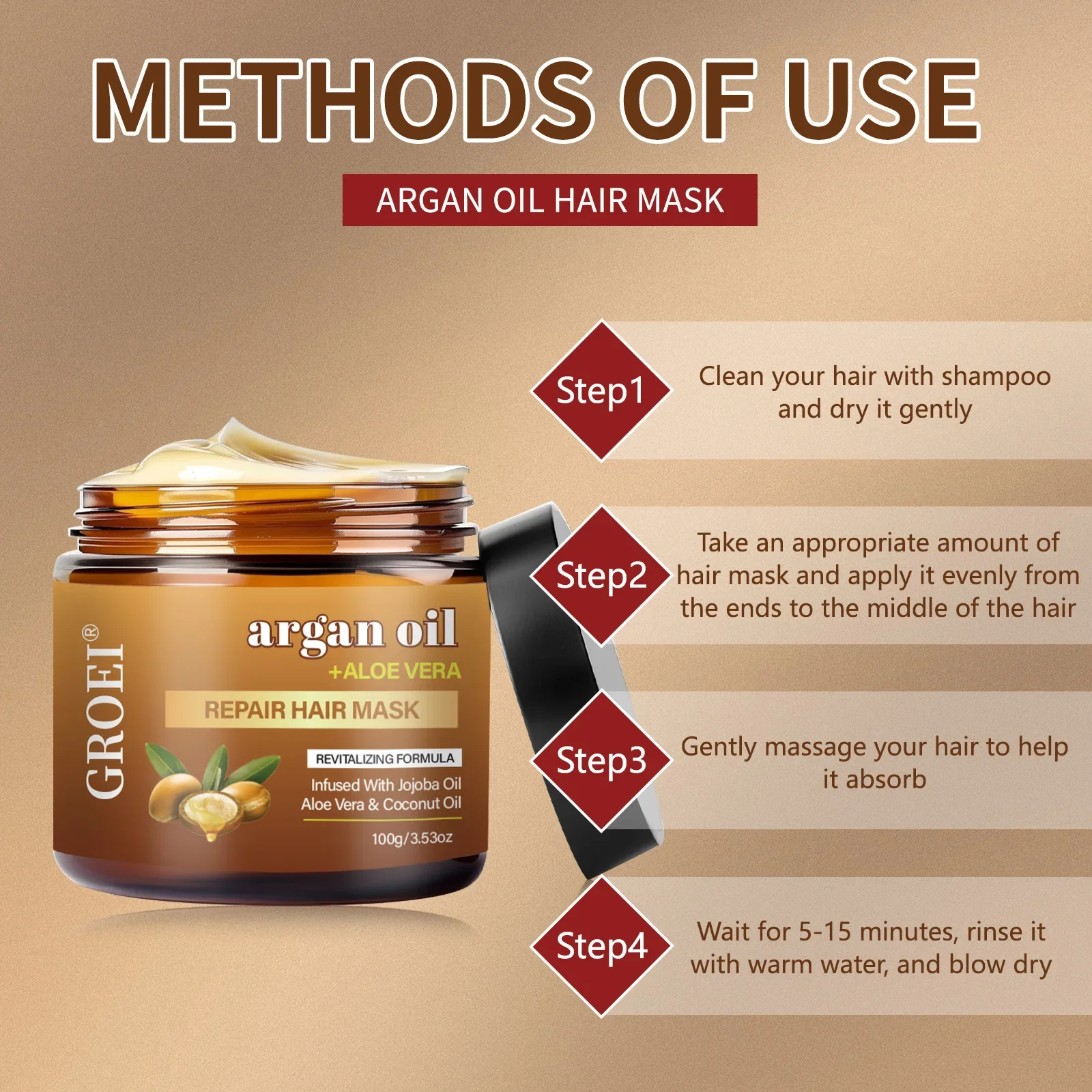 Masque capillaire réparateur à l’huile d’argan & à l’aloe vera GROEI – 100 g